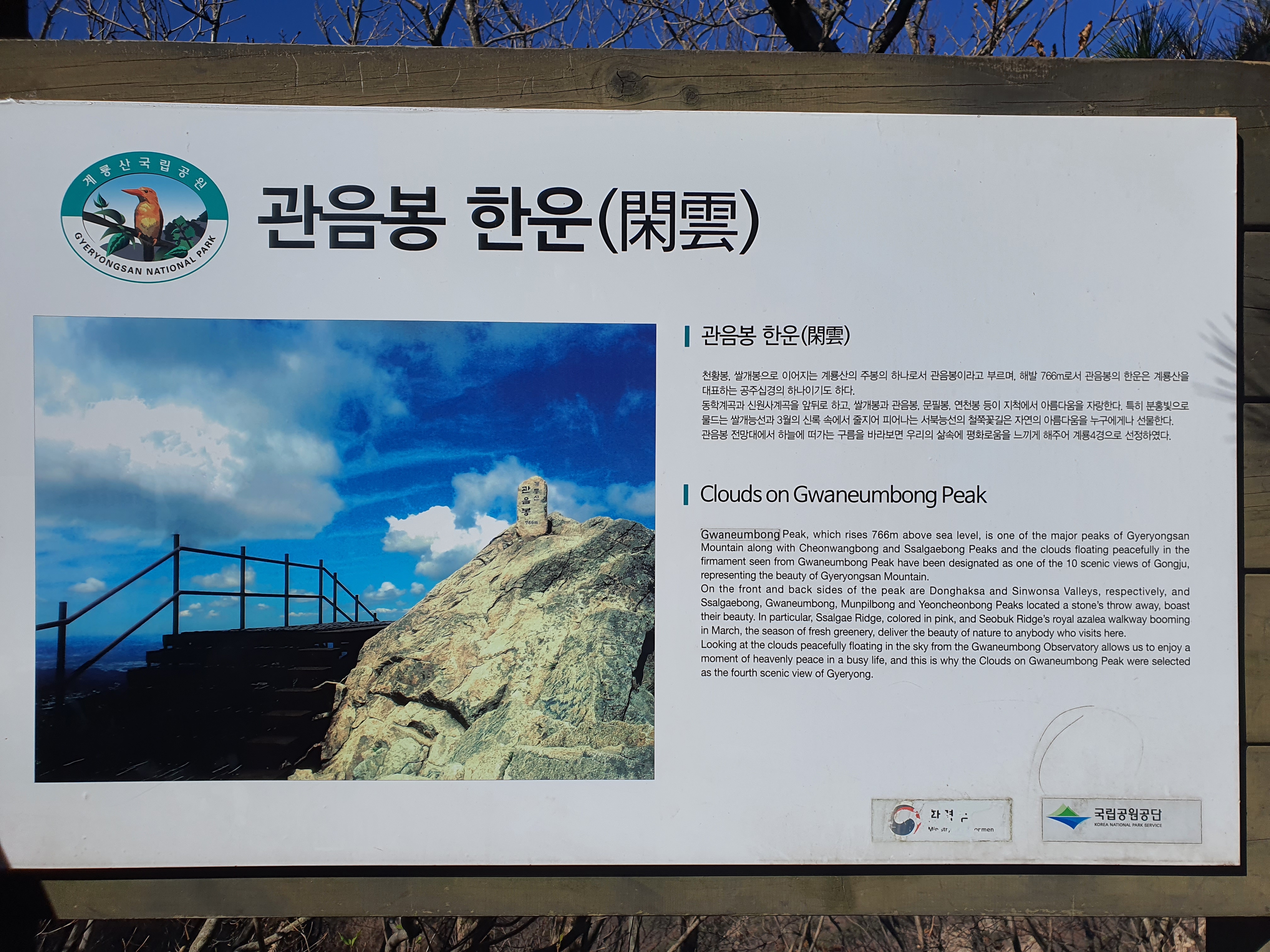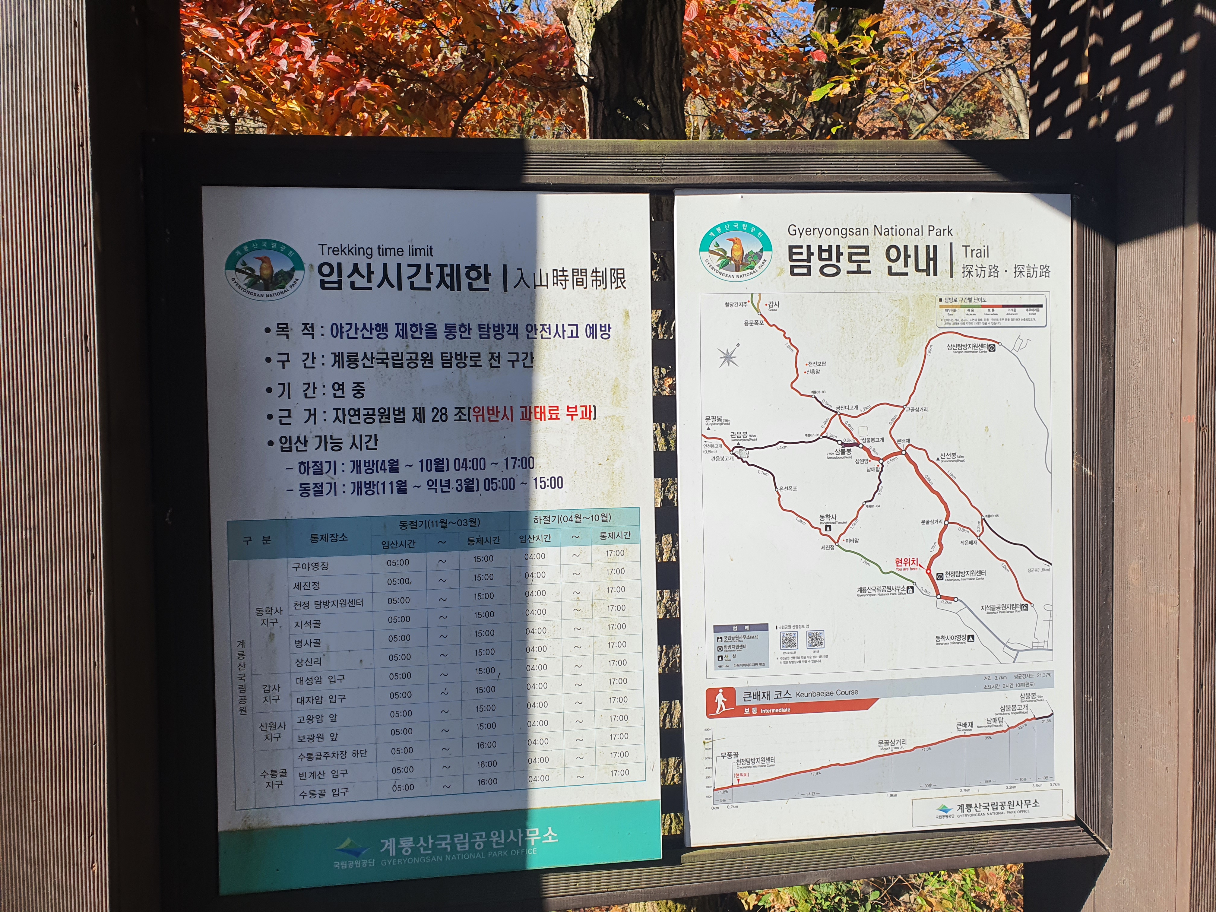 등산코스 : 천정탐방지원센터 -> 문골삼거리 -> 큰배재 -> 남매탑 -> 삼불봉고개 -> 삼불봉 -> 관음봉-> 관음봉고개 -> 은선폭포 -> 동학사 -> 계룡산국립공원사무소로 하산했습니다.