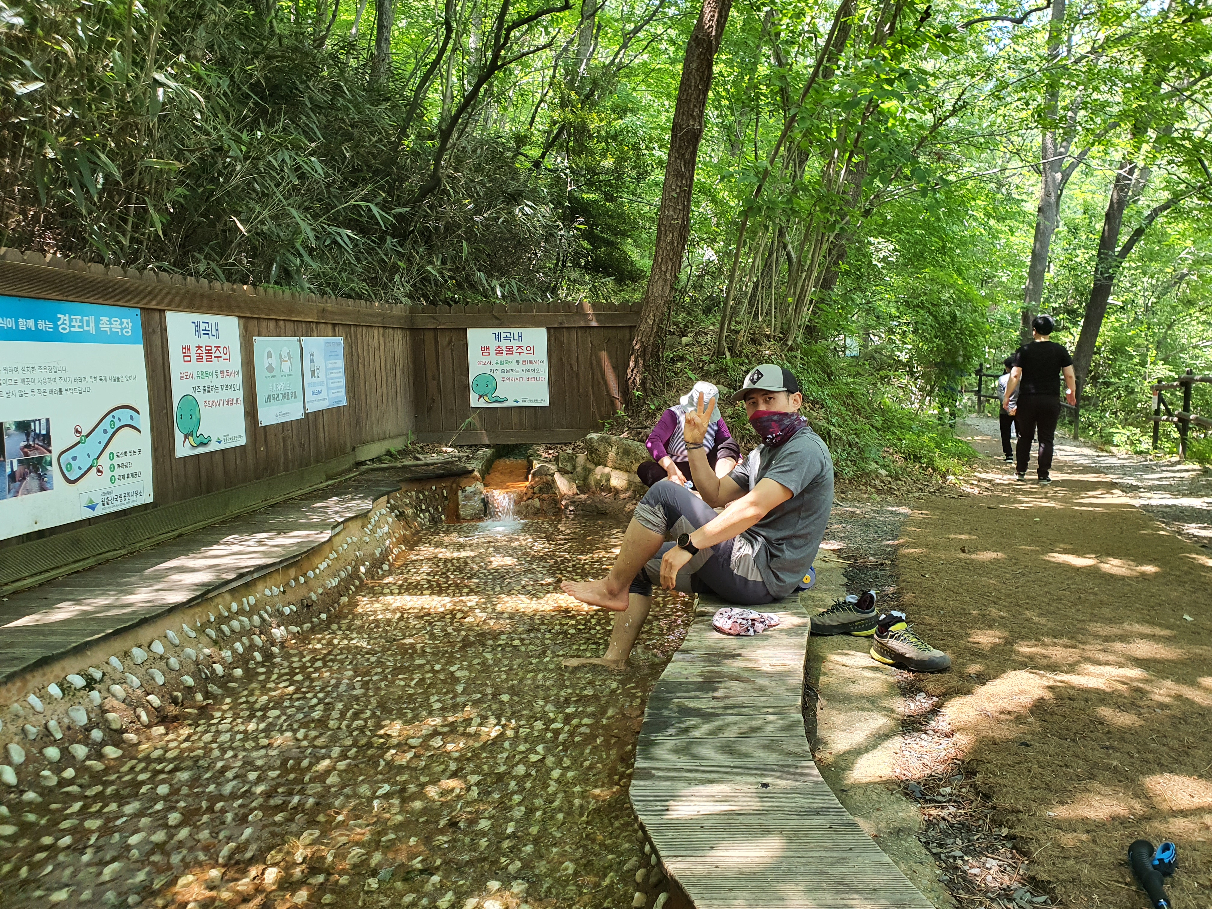 정상인 천왕봉을 지나 하산하시면 아래와 같이 쉬는곳이 있고 거의 다 와서는 가볍게 발 담글 수 있는 곳 있습니다.